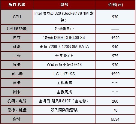 10年前經(jīng)典Intel配置報價: