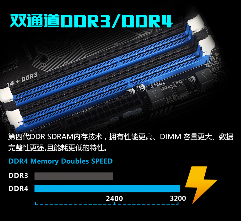 內(nèi)存描述 DDR4+DDR3內(nèi)存插槽