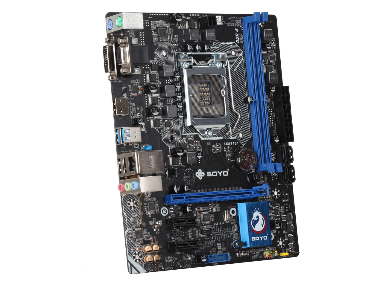 SY-H110D4 全固版 V2.0采用Intel H110芯片,支持LGA1151接口的CPU,支持DDR4 2133雙通道內(nèi)存,這款主板配備HDMI+DVI+VGA視頻接口輸出,帶數(shù)模分割線和黃金音頻電容,并且采用了霧黑PCB、中空散熱片等精選用料,適合組建高性價(jià)比平臺(tái)。