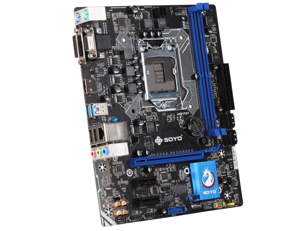 梅捷SY-B150V+ 魔聲版 V2.0是新一代的性價比利器,采用了 Intel B150芯片,支持LGA1151接口的CPU,配備了VGA+DVI+HDMI高清輸出接口,支持DDR4 2133雙通道內(nèi)存,新升級梅捷獨家中空散熱片,外觀更美觀,且散熱面積更大,散熱效果更好,并帶數(shù)模分割線、信仰燈和黃金音頻電容等音頻優(yōu)化設(shè)計。