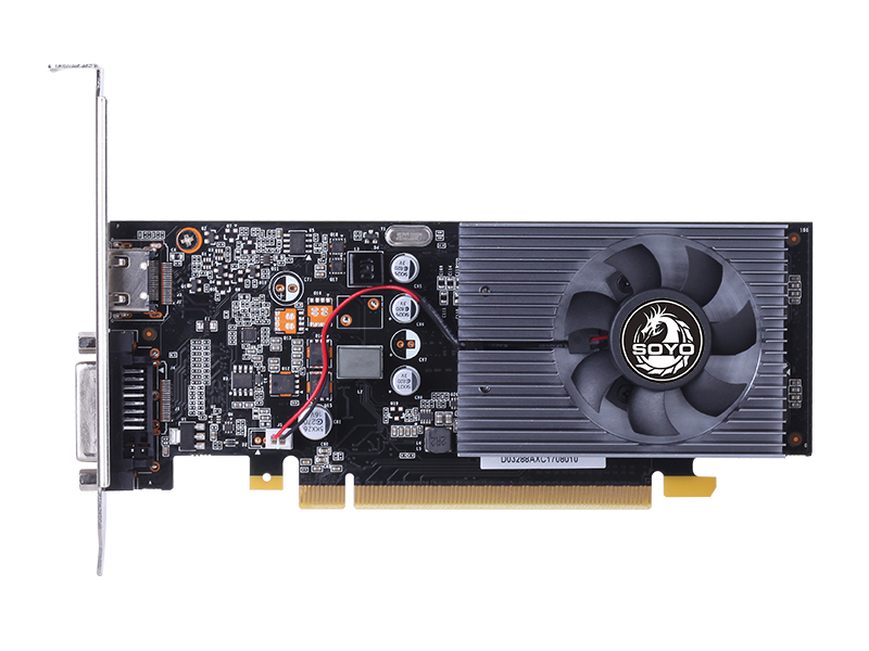 梅捷GT1030鎧龍2G采用NVIDIA14nm工藝制造的帕斯卡GP108核心,擁有384個流處理器,搭載2GB大容量GDDR5顯存,64bit顯存位寬,核心頻率1227MHz,支持NVIDIA的GPU Boost技術,核心頻率動態(tài)智能調節(jié)至1468MHz,等效顯存頻率6GHz,整卡滿載功耗僅30W。顯卡采用鍍銀PCB,全固電容,刀卡的設計,兼容各類機箱,輸出方面整卡配備了HDMI+DVI-D,輕松應對玩家日常需求。